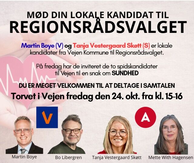 I dag havde Tanja og jeg besøg af vores to spidskandidater i Region Syddanmark, Bo Libergren (V) og Mette With Hagensen (S) for at sætte fokus på Regionsvalget, hvor Tanja og jeg er lokal kandidater fra Vejen Kommune.